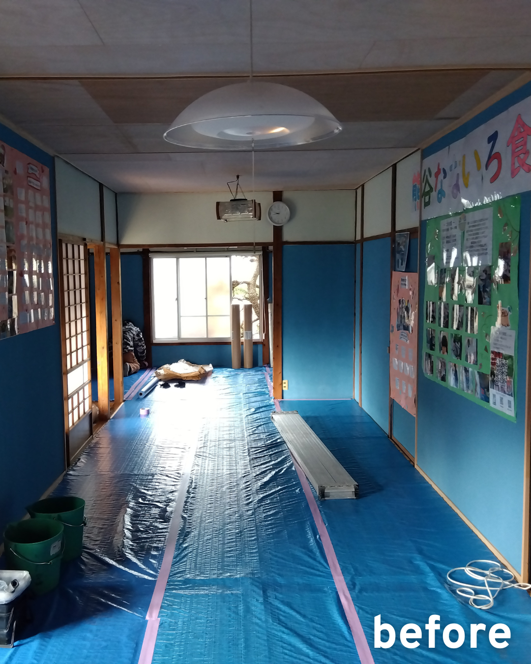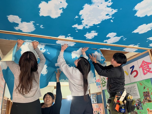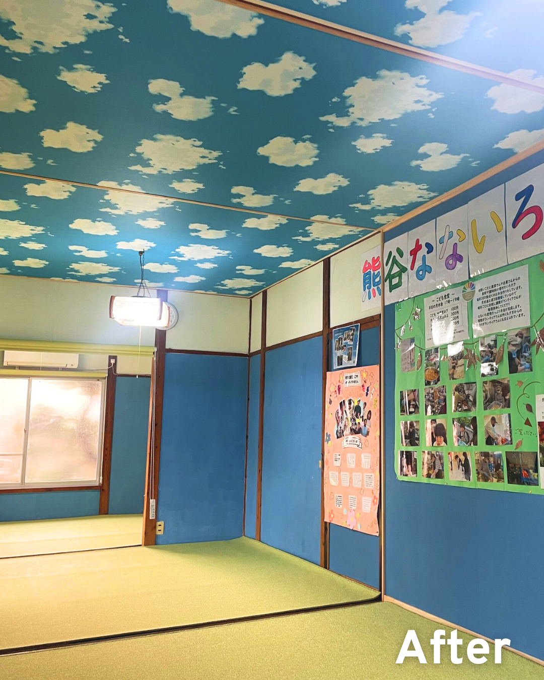 先日、熊谷なないろ食堂様が運営されている、子どもたちのための学びの場「てらこや なないろ」にて、天井の壁紙とカーペットを新しくするボランティア工事をさせていただきましたので、その活動の様子をご紹介します!