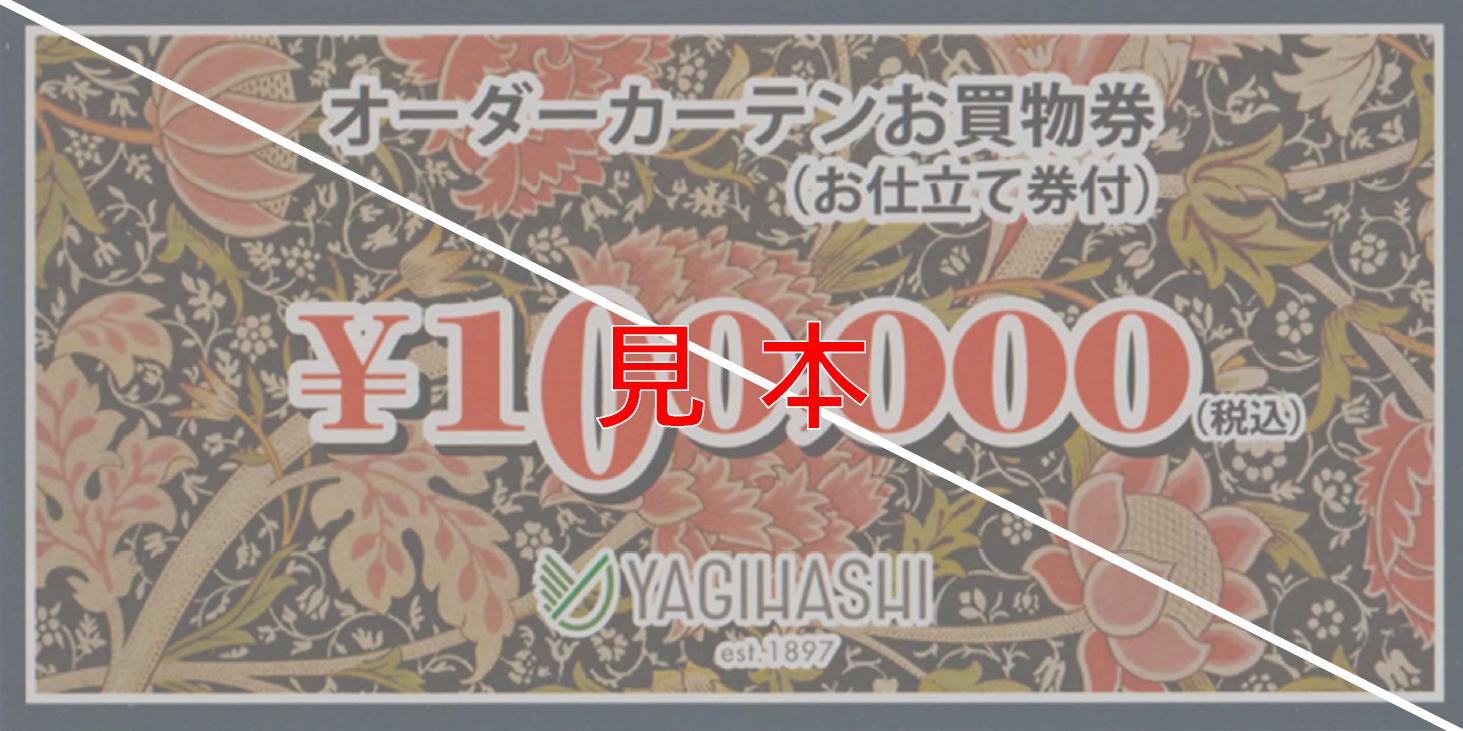 オーダーカーテン、ブラインド、ロールスクリーンなどのお買い上げやそれに伴う工事代100,000円分のお支払いにお使いいただけます。掛け替えをご検討中のお客様には大変お得なお買物券になっておりますので、是非この機会にご利用くださいませ。